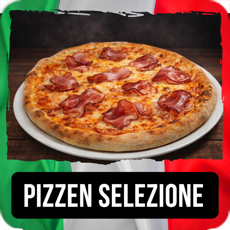 Zwiebeln, Pfefferoni, Knoblauch, Chili, Speck, scharfe Salami, Grana Padano, Tomaten