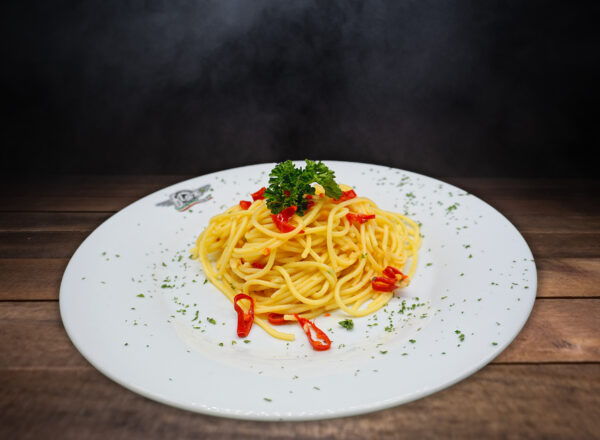 Knoblauch, Olivenöl, Chili und frische Petersilie